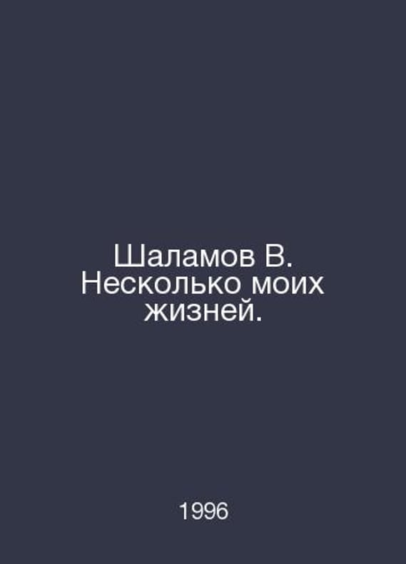 Shalamov Q. Some of my lives. In Russian /Shalamov V. Neskolko moikh zhizney. M. Republic. 1996.Contact us for details or to request photos of available books. Delivery of this book could take longer than normal due to additional handling time before shipping, and no rush delivery options are available. Please let us know if you have a specific date by which you need to receive your order.SKUalb632508830ec13e2e