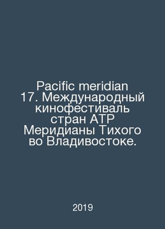 Pacific Meridian 17. Pacific Meridian International Film Festival in Vladivostok. In Russian /Pacific meridian 17. Mezhdunarodnyy kinofestival stran ATR Meridiany Tikhogo vo Vladivostoke. September 13-19, 2019. Vladivostok. 2019. Contact us for details or to request photos of available books. Delivery of this book could take longer than normal due to additional handling time before shipping, and no rush delivery options are available. Please let us know if you have a specific date by which you need to receive your order.SKUalb633a0aad4e055231