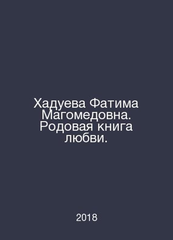 Khadueva Fatima Magomedovna. Family Book of Love. In Russian /Khadueva Fatima Magomedovna. Rodovaya kniga lyubvi. M.: ACT 2018. Contact us for details or to request photos of available books. Delivery of this book could take longer than normal due to additional handling time before shipping, and no rush delivery options are available. Please let us know if you have a specific date by which you need to receive your order. SKUalb6368fd53320a363f