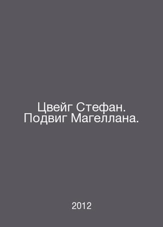 Zweig Stefan. Magellans feat. In Russian /Tsveyg Stefan. Podvig Magellana. History series. Geography. Ethnography. M. Lomonosov. 2012. Contact us for details or to request photos of available books. Delivery of this book could take longer than normal due to additional handling time before shipping, and no rush delivery options are available. Please let us know if you have a specific date by which you need to receive your order.SKUalb63a6ce34a7cd31d5