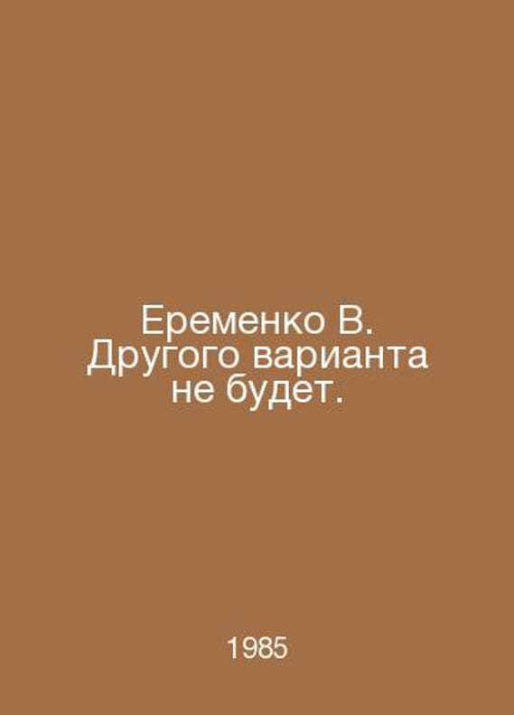 Eremenko V. There will be no other option. In Russian /Eremenko V. Drugogo varianta ne budet. M Sovremennik 1985.Contact us for details or to request photos of available books. Delivery of this book could take longer than normal due to additional handling time before shipping, and no rush delivery options are available. Please let us know if you have a specific date by which you need to receive your order.SKUalb63d44236aea4701c