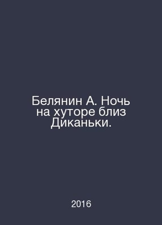 Belyanin A. Overnight at a farmhouse near Dikanka. In Russian /Belyanin A. Noch na khutore bliz Dikanki. The Series: A Fantastic M. Alpha Book 2016. Contact us for details or to request photos of available books. Delivery of this book could take longer than normal due to additional handling time before shipping, and no rush delivery options are available. Please let us know if you have a specific date by which you need to receive your order.SKUalb643278bab53a561f