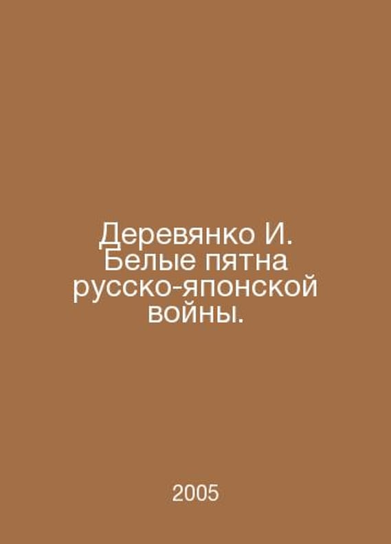 Derevyanko I. White Spot of the Russo-Japanese War. In Russian /Derevyanko I. Belye pyatna russko-yaponskoy voyny. A series of Russian secrets. M. Yauza 2005.Contact us for details or to request photos of available books. Delivery of this book could take longer than normal due to additional handling time before shipping, and no rush delivery options are available. Please let us know if you have a specific date by which you need to receive your order.SKUalb643eddae5c2ad5f1