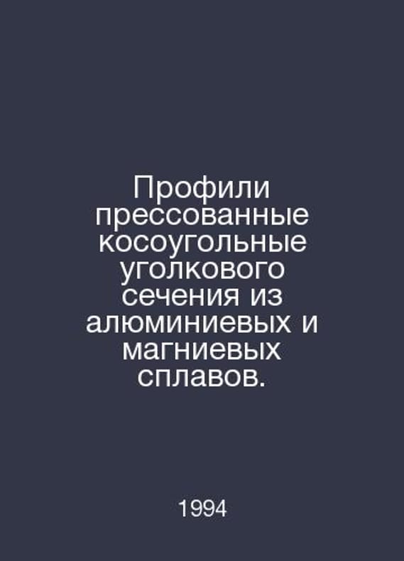 Compressed oblique-angle profiles made of aluminium and magnesium alloys. In Russian /Profili pressovannye kosougolnye ugolkovogo secheniya iz alyuminievykh i magnievykh splavov. Guest P 50077-92 M Standard Edition 1994. Contact us for details or to request photos of available books. Delivery of this book could take longer than normal due to additional handling time before shipping, and no rush delivery options are available. Please let us know if you have a specific date by which you need to receive your order.SKUalb6497ba919ee93fa2