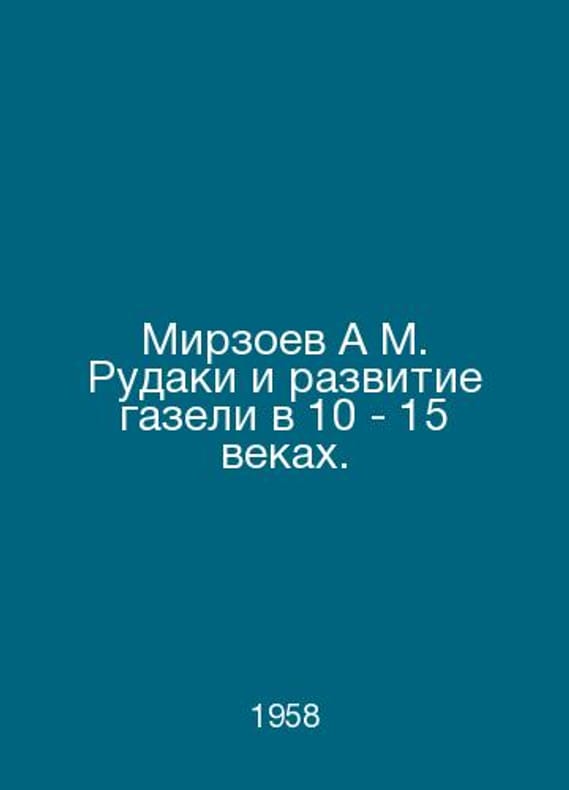 Mirzoev A M. Rudaki and the development of gazelles in the 10-15 centuries. In Russian /Mirzoev A M. Rudaki i razvitie gazeli v 10 - 15 vekakh. Stalinabad Tajikgosizdat 1958. Contact us for details or to request photos of available books. Delivery of this book could take longer than normal due to additional handling time before shipping, and no rush delivery options are available. Please let us know if you have a specific date by which you need to receive your order. SKUalb64bca4066e0d4d84