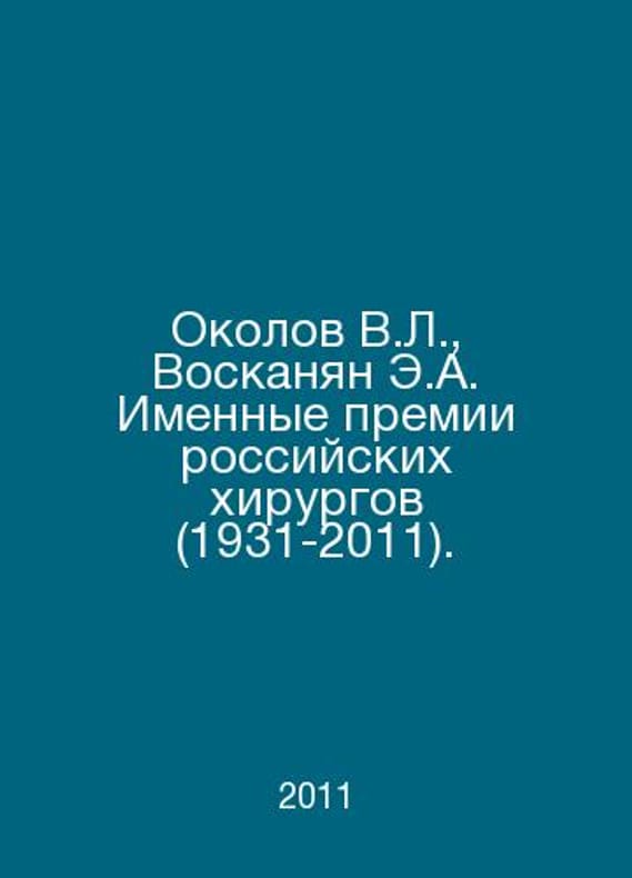 Okolov V.L., Voskanyan E.A. Nominal Prizes of Russian Surgeons (1931-2011). In Russian /Okolov V.L., Voskanyan E.A. Imennye premii rossiyskikh khirurgov (1931-2011). Pyatigorsk 2011.Contact us for details or to request photos of available books. Delivery of this book could take longer than normal due to additional handling time before shipping, and no rush delivery options are available. Please let us know if you have a specific date by which you need to receive your order.SKUalb654f27781fcc345a