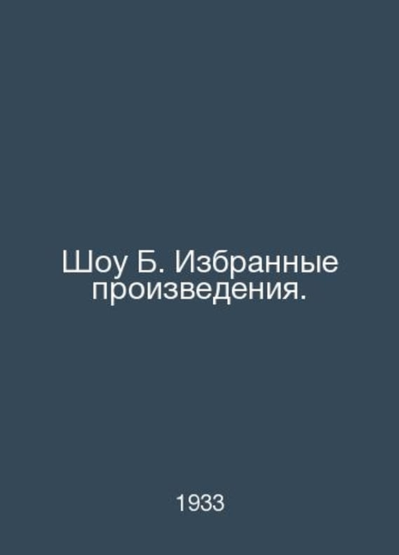 The B. Selected Works Show. In Russian /Shou B. Izbrannye proizvedeniya. Moscow Leningrad Art Literature 1933.. Contact us for details or to request photos of available books. SKUalb65aa6e8557709dd7.