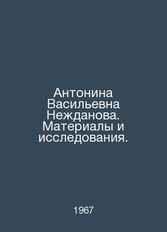 Antonina Nezhdanova. Materials and Research. In Russian /Antonina Vasilevna Nezhdanova. Materialy i issledovaniya. Nezhdanova Vocal and Creative Study. Artist V.V. Lazursky. Moscow. Art. 1967.Contact us for details or to request photos of available books. Delivery of this book could take longer than normal due to additional handling time before shipping, and no rush delivery options are available. Please let us know if you have a specific date by which you need to receive your order.SKUalb65f4b5650d7c9887