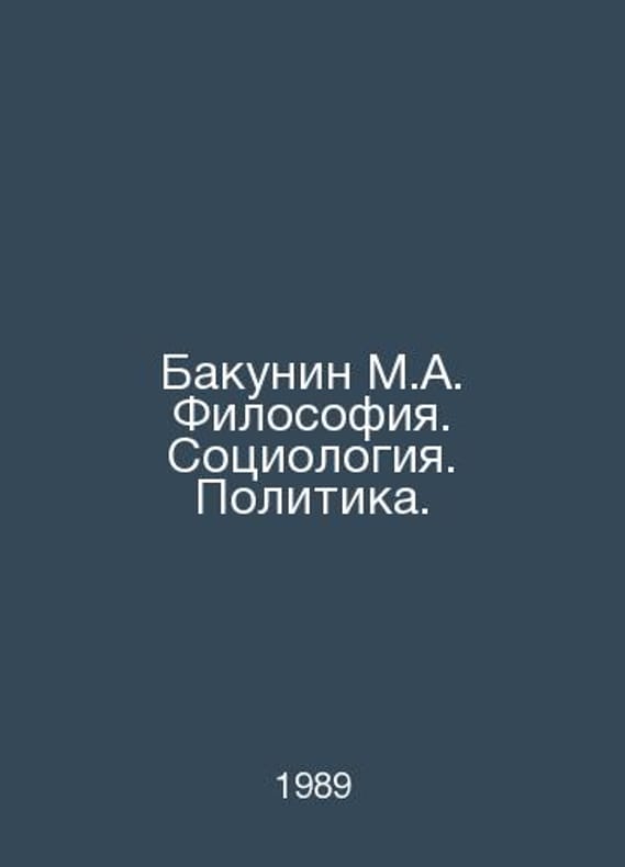 Bakunin M.A. Philosophy. Sociology. Politics. In Russian /Bakunin M.A. Filosofiya. Sotsiologiya. Politika. Series: From the History of Russian Philosophical Thought, M. Pravda 1989.Contact us for details or to request photos of available books. Delivery of this book could take longer than normal due to additional handling time before shipping, and no rush delivery options are available. Please let us know if you have a specific date by which you need to receive your order.SKUalb65fe6ca636aae403