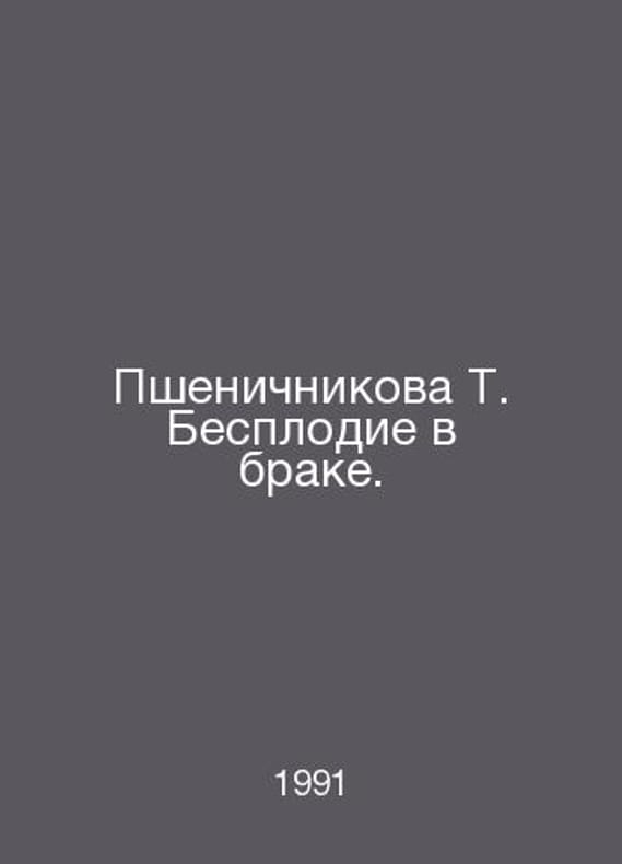 Pshenichnikova T. Infertility in marriage. In Russian /Pshenichnikova T. Besplodie v brake. BPR M Medicine 1991.Contact us for details or to request photos of available books. Delivery of this book could take longer than normal due to additional handling time before shipping, and no rush delivery options are available. Please let us know if you have a specific date by which you need to receive your order.SKUalb6784bb9b419dd16e