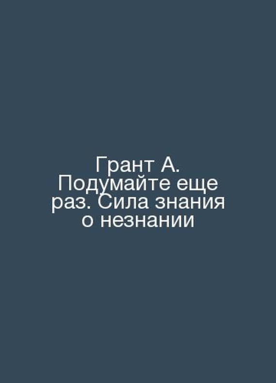 Grant A. Think Again. The Power of Knowledge About Ignorance In Russian /Grant A. Podumayte eshche raz. Sila znaniya o neznanii M. Mann, Ivanov and Ferber 2021 272s.Contact us for details or to request photos of available books. Delivery of this book could take longer than normal due to additional handling time before shipping, and no rush delivery options are available. Please let us know if you have a specific date by which you need to receive your order.SKUalb683a50f0fea8375c