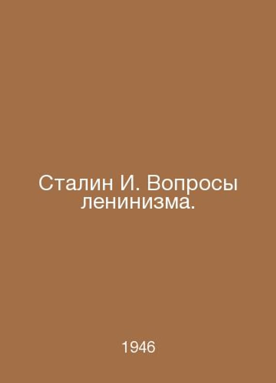Stalin I. Questions of Leninism. In Russian /Stalin I. Voprosy leninizma. Edition 11. Print from the matrices of 1941. M. State Publishing House of Political Literature. 1946.Contact us for details or to request photos of available books. Delivery of this book could take longer than normal due to additional handling time before shipping, and no rush delivery options are available. Please let us know if you have a specific date by which you need to receive your order.SKUalb6845c09122793ea5
