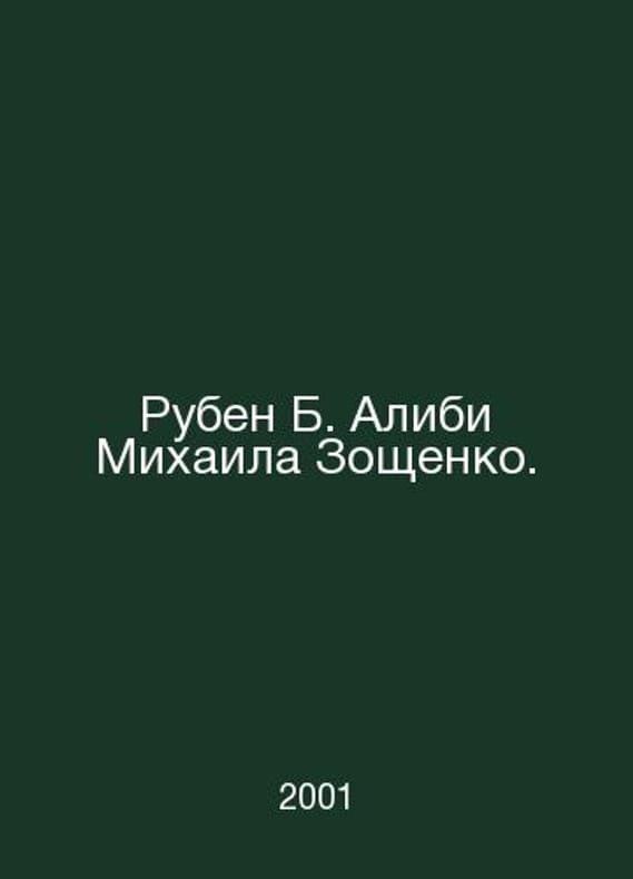 Mikhail Zoshchenkos Ruben B. Alibi. In Russian /Ruben B. Alibi Mikhaila Zoshchenko. M. Agraph 2001. Contact us for details or to request photos of available books. Delivery of this book could take longer than normal due to additional handling time before shipping, and no rush delivery options are available. Please let us know if you have a specific date by which you need to receive your order. SKUalb686bb121cd32044d