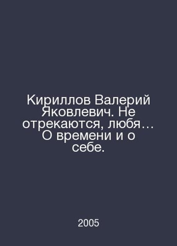 Kirillov Valery Yakovlevich: They do not deny, loving about time and about themselves. In Russian /Kirillov Valeriy Yakovlevich. Ne otrekayutsya, lyubya O vremeni i o sebe. Moscow 2005.Contact us for details or to request photos of available books. Delivery of this book could take longer than normal due to additional handling time before shipping, and no rush delivery options are available. Please let us know if you have a specific date by which you need to receive your order.SKUalb68853086c3e680fc