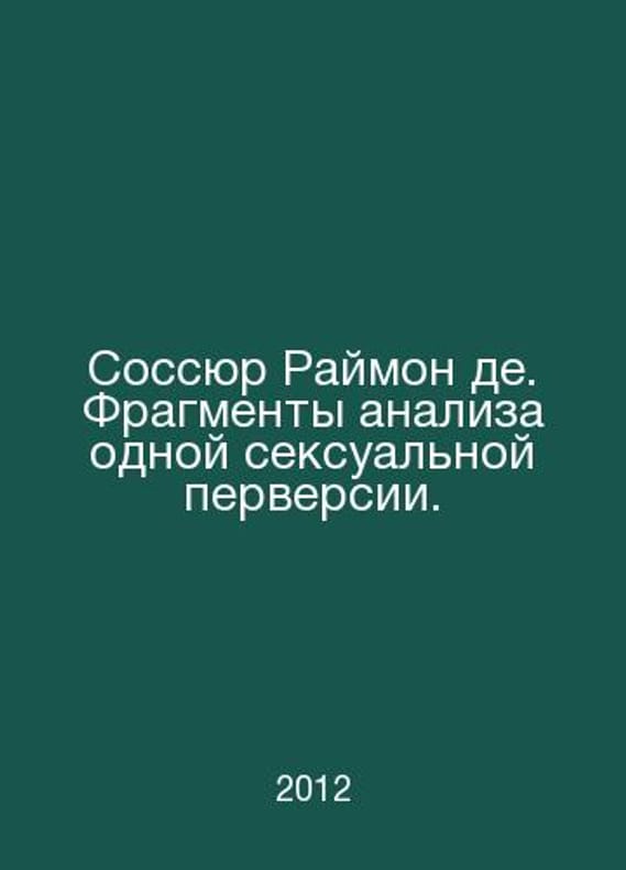 Saussur Raymond de. Fragments of an analysis of one sexual perversion. In Russian /Sossyur Raymon de. Fragmenty analiza odnoy seksualnoy perversii. Translation from French. Series: PSA consilium. Izhevsk ERGO 2012.Contact us for details or to request photos of available books. Delivery of this book could take longer than normal due to additional handling time before shipping, and no rush delivery options are available. Please let us know if you have a specific date by which you need to receive your order.SKUalb68a69021ea2e5c69