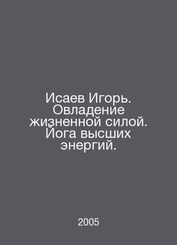 Isaev Igor. Mastering Life Force. Higher Energy Yoga. In Russian /Isaev Igor. Ovladenie zhiznennoy siloy. Yoga vysshikh energiy. M. Ripoll Classic 2005. Contact us for details or to request photos of available books. Delivery of this book could take longer than normal due to additional handling time before shipping, and no rush delivery options are available. Please let us know if you have a specific date by which you need to receive your order. SKUalb6a2bac42356a96bb