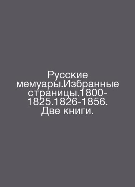 Russian memoirs. Selected pages. 1800-1825.1826-1856. Two books. In Russian /Russkie memuary.Izbrannye stranitsy.1800-1825.1826-1856. Dve knigi. Literary Memories. Moscow: Pravda. 1989-90.Contact us for details or to request photos of available books. Delivery of this book could take longer than normal due to additional handling time before shipping, and no rush delivery options are available. Please let us know if you have a specific date by which you need to receive your order.SKUalb6b0896a8ba621513