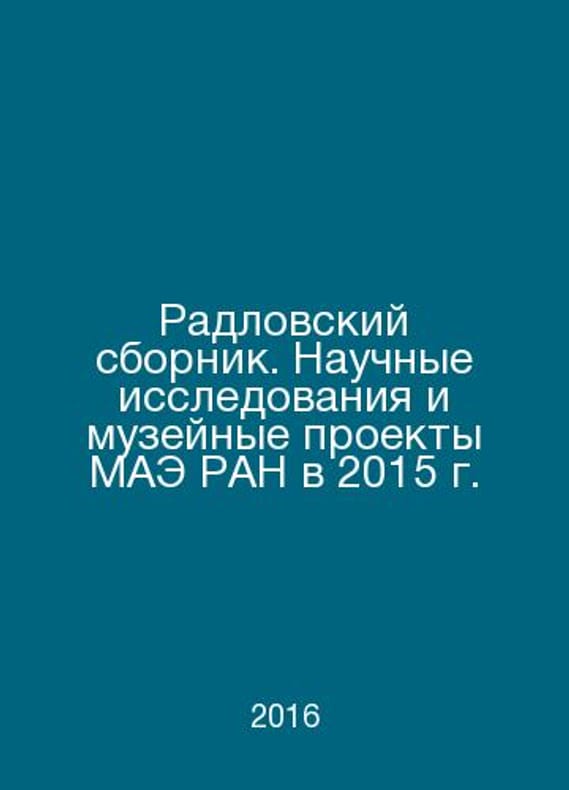 Radlovsky Digest. Scientific Research and Museum Projects of the MAE RAS in 2015 In Russian /Radlovskiy sbornik. Nauchnye issledovaniya i muzeynye proekty MAE RAN v 2015 g. Rev. Yu. K. Chistov St. Petersburg MAE RAS 2016. Contact us for details or to request photos of available books. Delivery of this book could take longer than normal due to additional handling time before shipping, and no rush delivery options are available. Please let us know if you have a specific date by which you need to receive your order.SKUalb6b99fe3cb4c42e10
