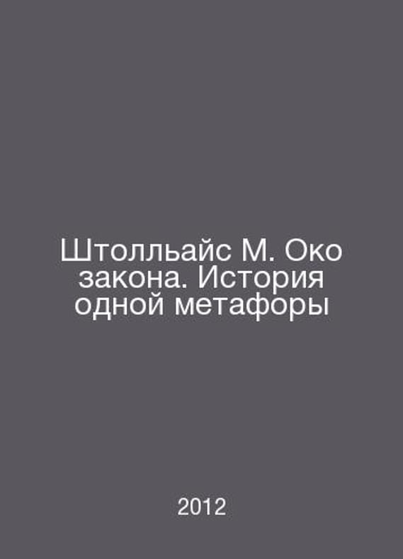 Stolliace M. Laws Eye of the Law: A History of One Metaphor In Russian /Shtollays M. Oko zakona. Istoriya odnoy metafory M. ROSSPEN 2012. Contact us for details or to request photos of available books. Delivery of this book could take longer than normal due to additional handling time before shipping, and no rush delivery options are available. Please let us know if you have a specific date by which you need to receive your order.SKUalb6bae643655e17bd6