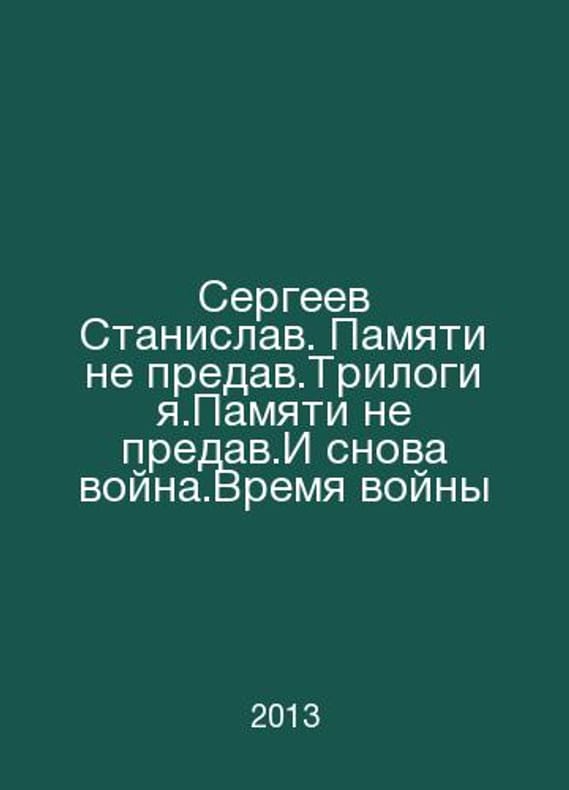 Sergei Stanislav. Memory is not betrayal.Trilogy. Memory is not betrayal.Time of War Again. In Russian /Sergeev Stanislav. Pamyati ne predav.Trilogiya.Pamyati ne predav.I snova voyna.Vremya voyny St. Petersburg Publishing House Leningrad 2013. Contact us for details or to request photos of available books. Delivery of this book could take longer than normal due to additional handling time before shipping, and no rush delivery options are available. Please let us know if you have a specific date by which you need to receive your order.SKUalb6bd40c66433b8afc