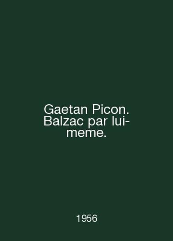 Gaetan Picon. Balzac par lui-meme. In English /Gaetan Picon. Balzac par lui-meme. Paris 1956. Contact us for details or to request photos of available books. Delivery of this book could take longer than normal due to additional handling time before shipping, and no rush delivery options are available. Please let us know if you have a specific date by which you need to receive your order. SKUalb6c3510b28b2b4127