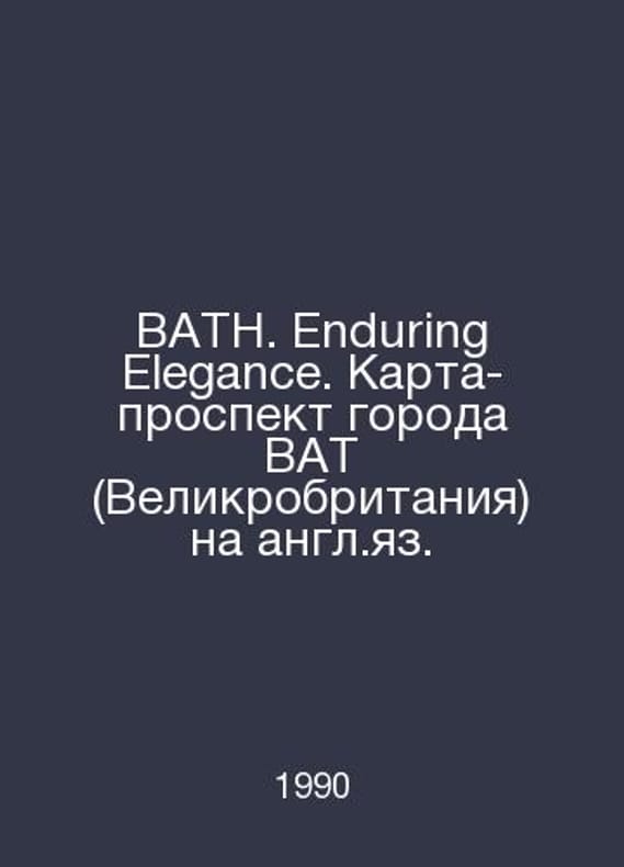 BATH. Enduring Elegance. Map of the city of BAT (Great Britain) in English. In Russian /BATH. Enduring Elegance. Karta-prospekt goroda VAT (Velikrobritaniya) na angl.yaz. Text: Richard Bailey Jarrold Publishing 1990. Contact us for details or to request photos of available books. Delivery of this book could take longer than normal due to additional handling time before shipping, and no rush delivery options are available. Please let us know if you have a specific date by which you need to receive your order. SKUalb6c4c6fdd7b322303