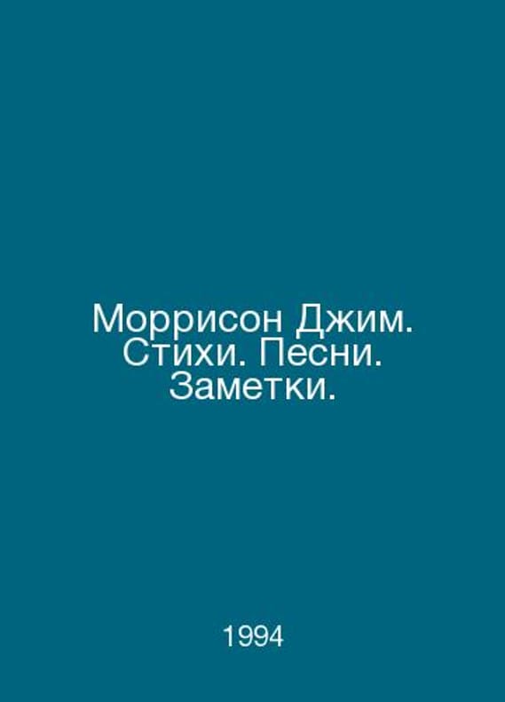 Morrison Jim. Poems. Songs. Notes. In Russian /Morrison Dzhim. Stikhi. Pesni. Zametki. Text in English and Russian. M. LLP Onyx, JSC NECO Publishing Group 1994. Contact us for details or to request photos of available books. Delivery of this book could take longer than normal due to additional handling time before shipping, and no rush delivery options are available. Please let us know if you have a specific date by which you need to receive your order.SKUalb6c790c7ac3a5b0db