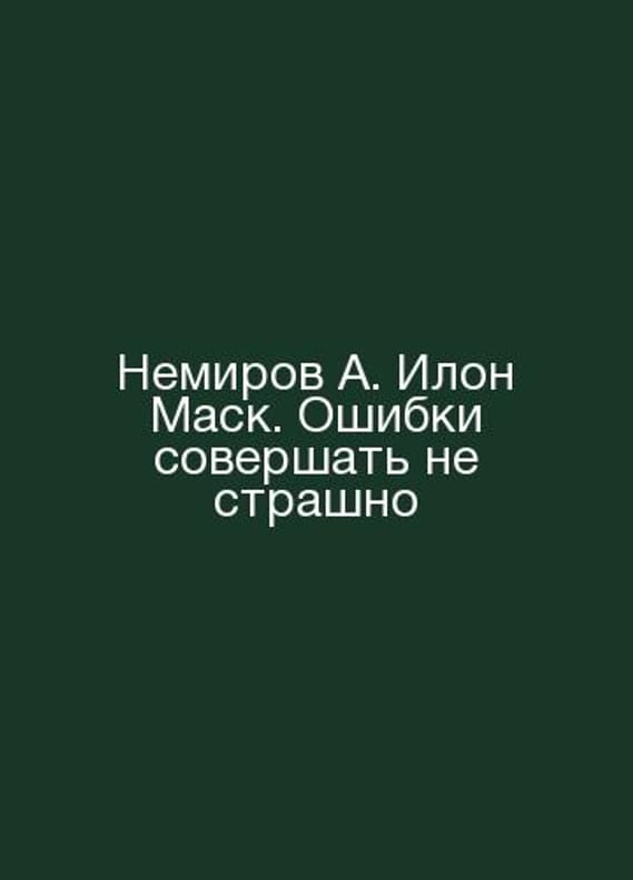 Nemirov A. Elon Musk. Its not scary to make mistakes In Russian /Nemirov A. Ilon Mask. Oshibki sovershat ne strashno Moscow Motherland 2021. 224 Contact us for details or to request photos of available books. Delivery of this book could take longer than normal due to additional handling time before shipping, and no rush delivery options are available. Please let us know if you have a specific date by which you need to receive your order.SKUalb6c7a925c9c87eb74