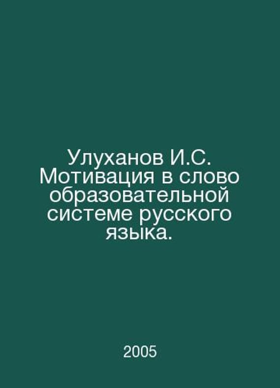 Ulukhanov I. S. Motivation in the vocabulary education system of the Russian language. In Russian /Ulukhanov I.S. Motivatsiya v slovoobrazovatelnoy sisteme russkogo yazyka. M. Azbukovnik 2005.. Contact us for details or to request photos of available books. SKUalb6ca85311812f05b0.