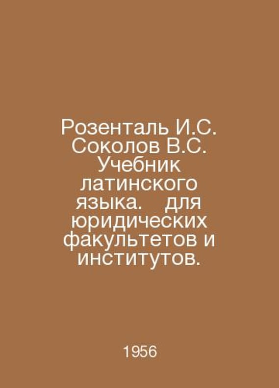 Rosenthal I.S. Sokolov V.S. Latin Language Textbook for Law Faculties and Institutes. In Russian /Rozental I.S. Sokolov V.S. Uchebnik latinskogo yazyka.†dlya yuridicheskikh fakultetov i institutov. M Publishing House of Foreign Languages 1956.. Contact us for details or to request photos of available books. SKUalb6cf3e2170e2d08bf.