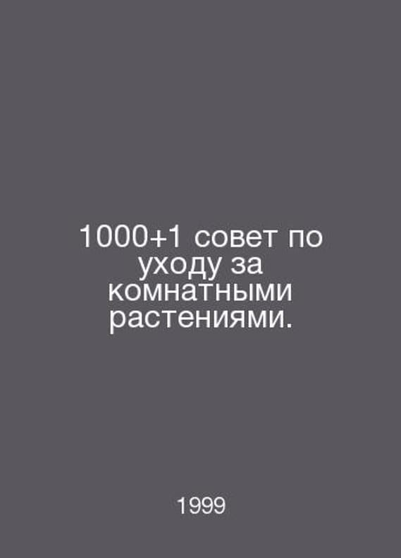 1000 and 1 advice for home plants. In Russian /1000and1 sovet po ukhodu za komnatnymi rasteniyami. Mn 1999.Contact us for details or to request photos of available books. Delivery of this book could take longer than normal due to additional handling time before shipping, and no rush delivery options are available. Please let us know if you have a specific date by which you need to receive your order.SKUalb6d86d9d15b682066