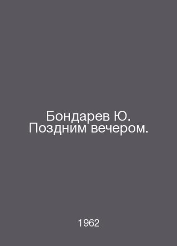 Yu. Bondaryev late in the evening. In Russian /Bondarev Yu. Pozdnim vecherom. M Young Guard stories 1962.Contact us for details or to request photos of available books. Delivery of this book could take longer than normal due to additional handling time before shipping, and no rush delivery options are available. Please let us know if you have a specific date by which you need to receive your order.SKUalb6da43d943afa35d4