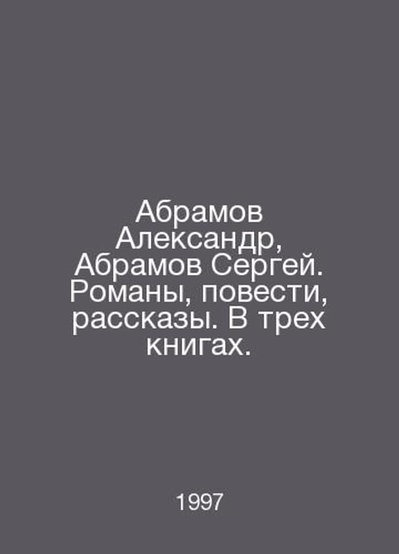 Abramov Alexander, Abramov Sergei. Novels, short stories, short stories. In three books. In Russian /Abramov Aleksandr, Abramov Sergey. Romany, povesti, rasskazy. V trekh knigakh. Classical Library of Adventure and Science Fiction. Artist A.M. Eremin. M. Centropolygraph. 1997. Contact us for details or to request photos of available books. Delivery of this book could take longer than normal due to additional handling time before shipping, and no rush delivery options are available. Please let us know if you have a specific date by which you need to receive your order.SKUalb6f016ae3bc1a1f1e