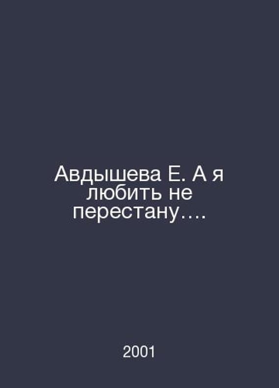 I wont stop loving Avdysheva. In Russian /Avdysheva E. A ya lyubit ne perestanu. Petrozavodsk Karelia 2001.Contact us for details or to request photos of available books. Delivery of this book could take longer than normal due to additional handling time before shipping, and no rush delivery options are available. Please let us know if you have a specific date by which you need to receive your order.SKUalb6f8e843607aae5ab