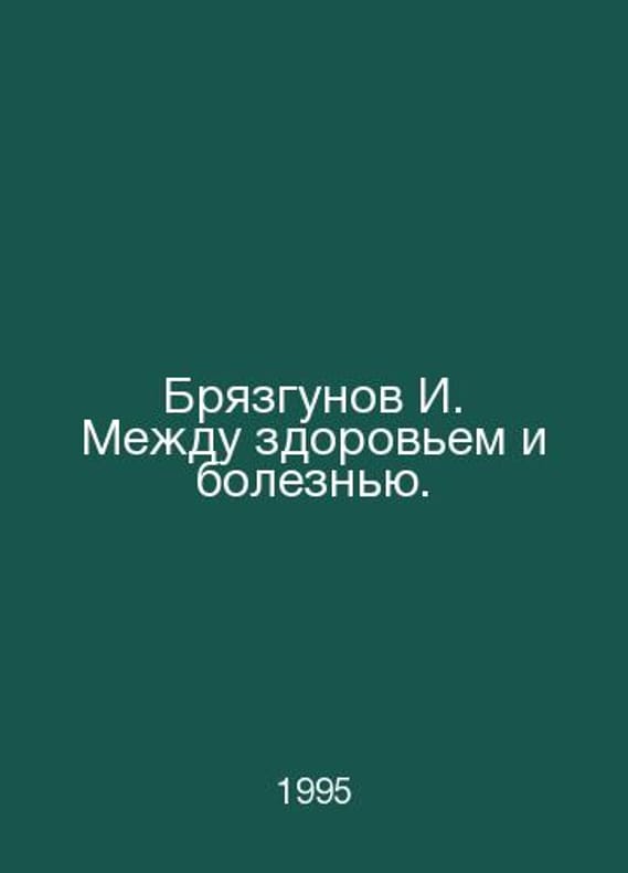 I. Bryazgunov Between Health and Disease. In Russian /Bryazgunov I. Mezhdu zdorovem i boleznyu. Functional Diseases in Childhood M 1995.Contact us for details or to request photos of available books. Delivery of this book could take longer than normal due to additional handling time before shipping, and no rush delivery options are available. Please let us know if you have a specific date by which you need to receive your order.SKUalb6fc1028adde5ed8f