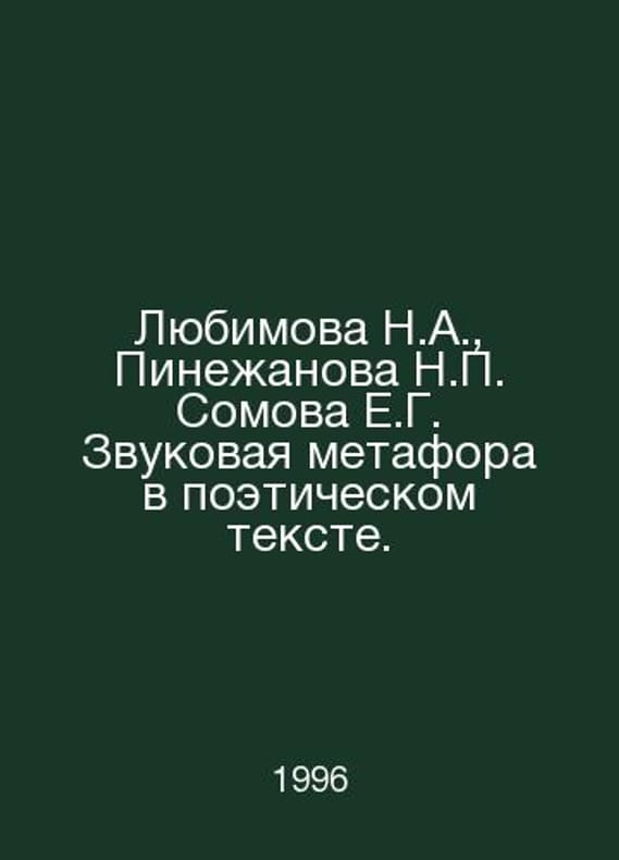 Lyubimova N.A., Pinezhanova N. Somova E.G. Sound metaphor in a poetic text. In Russian /Lyubimova N.A., Pinezhanova N. Somova E.G. Zvukovaya metafora v poeticheskom tekste. Ill.: RAS, 1996. Contact us for details or to request photos of available books. Delivery of this book could take longer than normal due to additional handling time before shipping, and no rush delivery options are available. Please let us know if you have a specific date by which you need to receive your order. SKUalb7064dd57b0fd790e