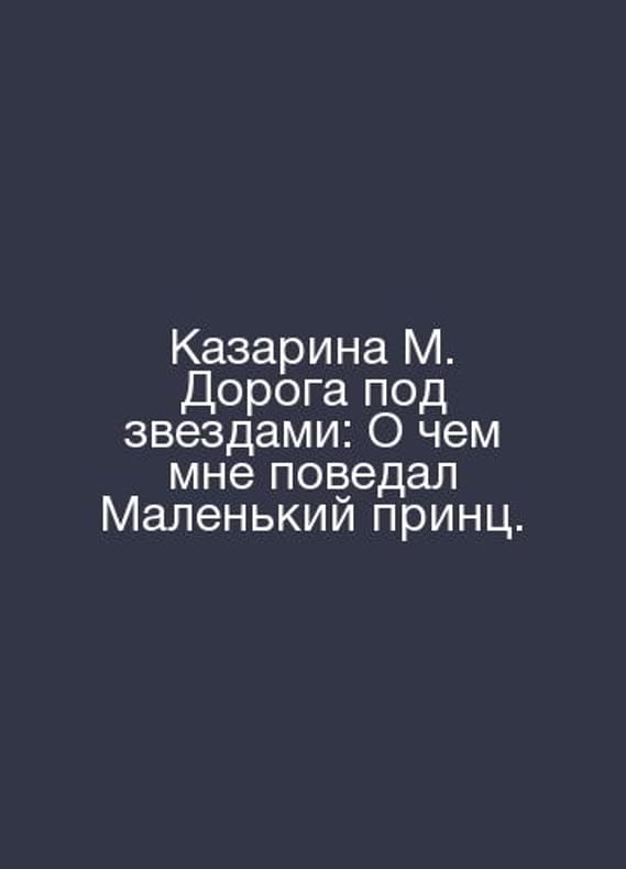 Kazarina M. The Road Under the Stars: What the Little Prince Told Me. In Russian /Kazarina M. Doroga pod zvezdami: O chem mne povedal Malenkiy prints. M Alpina 2023 28s.Contact us for details or to request photos of available books. Delivery of this book could take longer than normal due to additional handling time before shipping, and no rush delivery options are available. Please let us know if you have a specific date by which you need to receive your order.SKUalb70797f94c66569d4