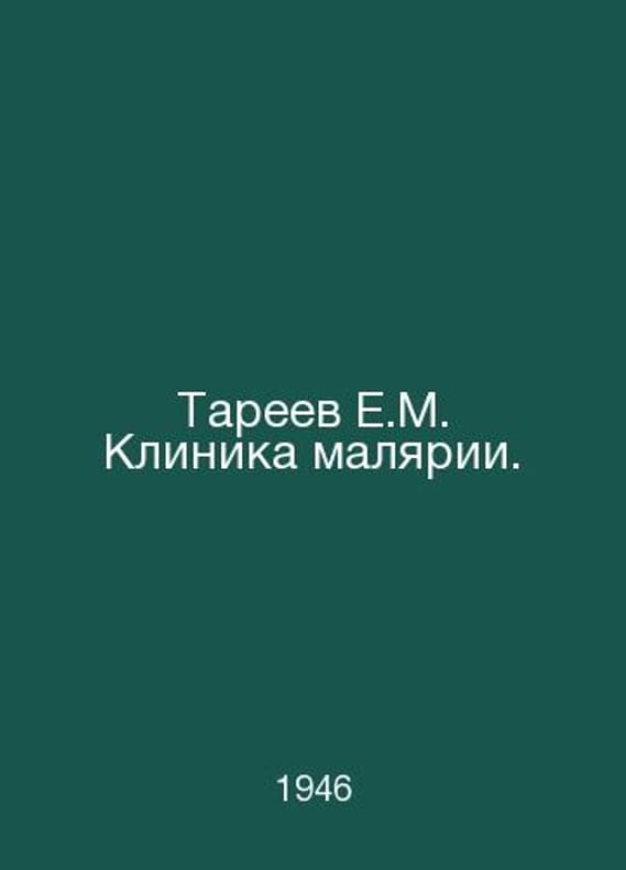 Tareev E.M. Malaria Clinic. In Russian /Tareev E.M. Klinika malyarii. Monograph. M. State Medical Journal 1946.. Contact us for details or to request photos of available books. SKUalb70c95001ca14067f.