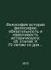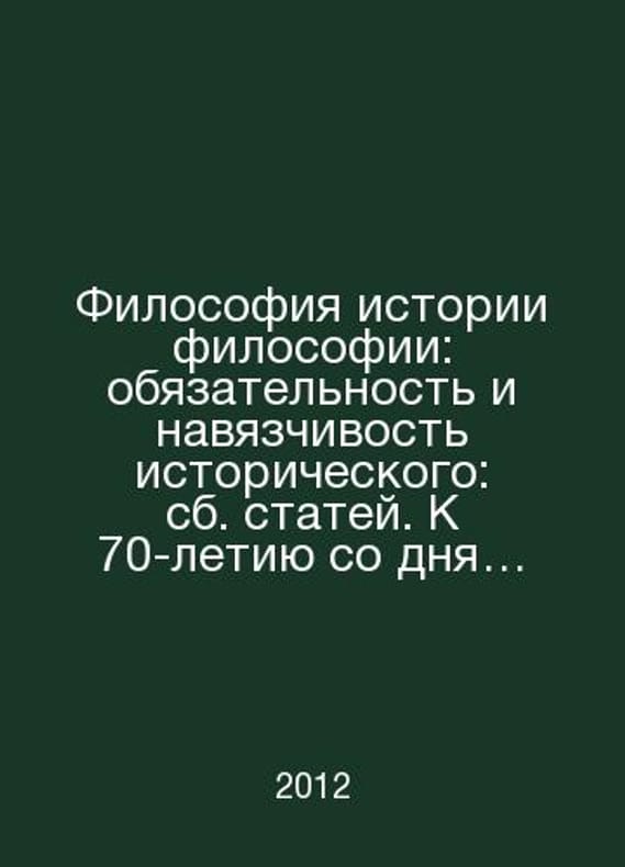 Philosophy of the History of Philosophy: Obsession and Obsession of History: Collected Articles. To the 70th Anniversary of the Birth of Professor K.A. Sergeev In Russian /Filosofiya istorii filosofii: obyazatelnost i navyazchivost istoricheskogo: sb. statey. K 70-letiyu so dnya rozhdeniya professora K.A. Sergeeva St. Petersburg University Publishing House 2012.Contact us for details or to request photos of available books. Delivery of this book could take longer than normal due to additional handling time before shipping, and no rush delivery options are available. Please let us know if you have a specific date by which you need to receive your order.SKUalb71007f5fd7bb168b