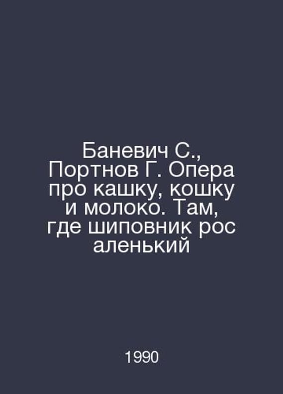 Banevich S., Portnov G. Opera about porridge, cat and milk. Where the rosehip grew scarlet In Russian /Banevich S., Portnov G. Opera pro kashku, koshku i moloko. Tam, gde shipovnik ros alenkiy L Soviet Composer 1990. Contact us for details or to request photos of available books. Delivery of this book could take longer than normal due to additional handling time before shipping, and no rush delivery options are available. Please let us know if you have a specific date by which you need to receive your order.SKUalb7133adc6ac078672