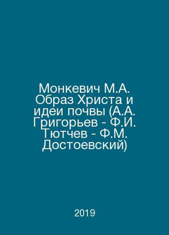 Monkevich M.A. The Image of Christ and Ideas of Soil (A.A. Grigoriev - F.I. Tyutchev - F.M. Dostoevsky) In Russian /Monkevich M.A. Obraz Khrista i idei pochvy (A.A. Grigorev - F.I. Tyutchev - F.M. Dostoevskiy) RHCA St. Petersburg 2019. Contact us for details or to request photos of available books. Delivery of this book could take longer than normal due to additional handling time before shipping, and no rush delivery options are available. Please let us know if you have a specific date by which you need to receive your order. SKUalb713d3c7ce4603754