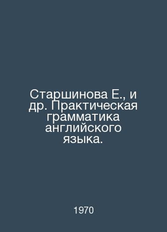 E. Starshinova, et al. Practical grammar of the English language. In Russian /Starshinova E., i dr. Prakticheskaya grammatika angliyskogo yazyka. M Moscow State University 1970.. Contact us for details or to request photos of available books. SKUalb716eef0515cb7795.