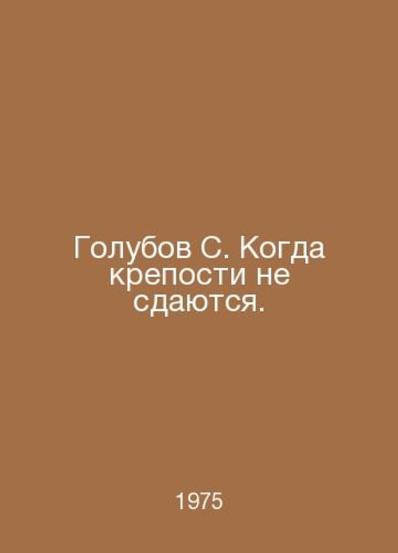 Golubov C. When the fortresses do not surrender. In Russian /Golubov S. Kogda kreposti ne sdayutsya. Novel in two books Petrozavodsk Karelia 1975.Contact us for details or to request photos of available books. Delivery of this book could take longer than normal due to additional handling time before shipping, and no rush delivery options are available. Please let us know if you have a specific date by which you need to receive your order.SKUalb71a97b72c90d7578