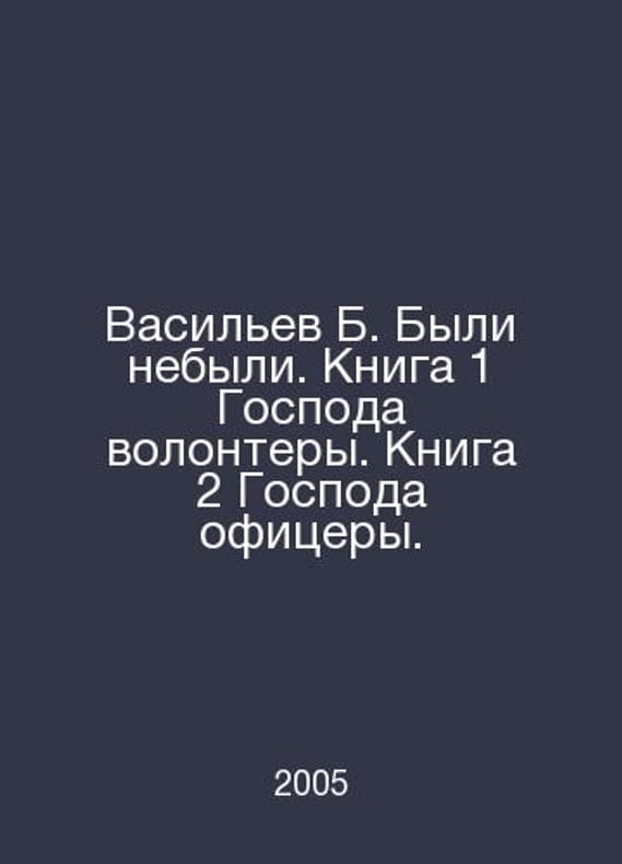 Vasiliev B. There were none. Book 1 of the Lord Volunteers. Book 2 of the Lord Officers. In Russian /Vasilev B. Byli nebyli. Kniga 1 Gospoda volontery. Kniga 2 Gospoda ofitsery. M.: Wagrius 2005.Contact us for details or to request photos of available books. Delivery of this book could take longer than normal due to additional handling time before shipping, and no rush delivery options are available. Please let us know if you have a specific date by which you need to receive your order.SKUalb726117872ea992ee