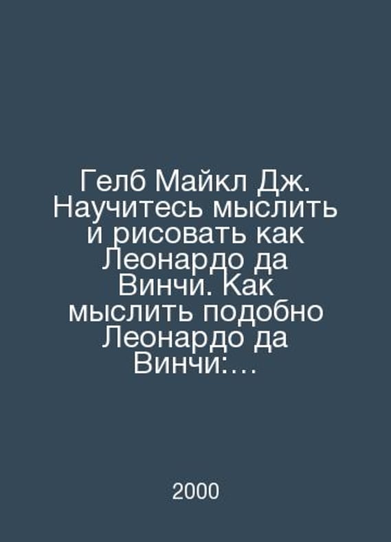 Gelb Michael J. Learn to think and draw like Leonardo da Vinci. How to think like Leonardo da Vinci: exercises, workbook. In Russian /Gelb Maykl Dzh. Nauchites myslit i risovat kak Leonardo da Vinchi. Kak myslit podobno Leonardo da Vinchi: uprazhneniya, rabochaya tetrad. Translated from English by Y.E.Andreeva. 2 books. Minsk. Poppuri. 2000.Contact us for details or to request photos of available books. Delivery of this book could take longer than normal due to additional handling time before shipping, and no rush delivery options are available. Please let us know if you have a specific date by which you need to receive your order.SKUalb726aaaff5eba4b4a