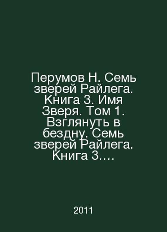 Perumov N. The Seven Beasts of Raileg. Book 3. The Name of the Beast. Volume 1. Look into the abyss. The Seven Beasts of Raileg. Book 3. The Name of the Beast. Volume 2. The Exodus of the Dragon (Book 2) In Russian /Perumov N. Sem zverey Raylega. Kniga 3. Imya Zverya. Tom 1. Vzglyanut v bezdnu. Sem zverey Raylega. Kniga 3. Imya Zverya. Tom 2. Iskhod Drakona (2 kn.) Series: The Nick Perumov Book Series by M. Eksmo, Domino, Eksmo Ltd 2011. Contact us for details or to request photos of available books. Delivery of this book could take longer than normal due to additional handling time before shipping, and no rush delivery options are available. Please let us know if you have a specific date by which you need to receive your order.SKUalb734429609e25fafd