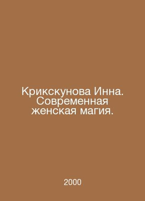 Krikskunova Inna. Modern Womens Magic. In Russian /Krikskunova Inna. Sovremennaya zhenskaya magiya. In the series Womens World. St. Petersburg Diamond, Golden Age. 2000. Contact us for details or to request photos of available books. Delivery of this book could take longer than normal due to additional handling time before shipping, and no rush delivery options are available. Please let us know if you have a specific date by which you need to receive your order. SKUalb738f93cf159a3be8