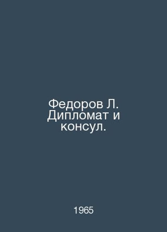 Fedorov L. Diplomat and Consul. In Russian /Fedorov L. Diplomat i konsul. M International 1965.Contact us for details or to request photos of available books. Delivery of this book could take longer than normal due to additional handling time before shipping, and no rush delivery options are available. Please let us know if you have a specific date by which you need to receive your order.SKUalb73a193a5523ea1a2