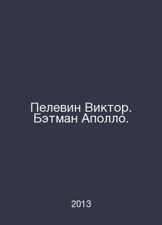 Pelevin Victor. Batman Apollo. In Russian /Pelevin Viktor. Betman Apollo. 480 g. M. Eksmo 2013.Contact us for details or to request photos of available books. Delivery of this book could take longer than normal due to additional handling time before shipping, and no rush delivery options are available. Please let us know if you have a specific date by which you need to receive your order.SKUalb73c7c2dcc08ccc25