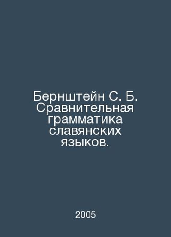Bernstein S. B. Comparative Grammar of Slavic Languages. In Russian /Bernshteyn S. B. Sravnitelnaya grammatika slavyanskikh yazykov. Moscow Publishing House 2005.. Contact us for details or to request photos of available books. SKUalb73dadcb974e489d0.